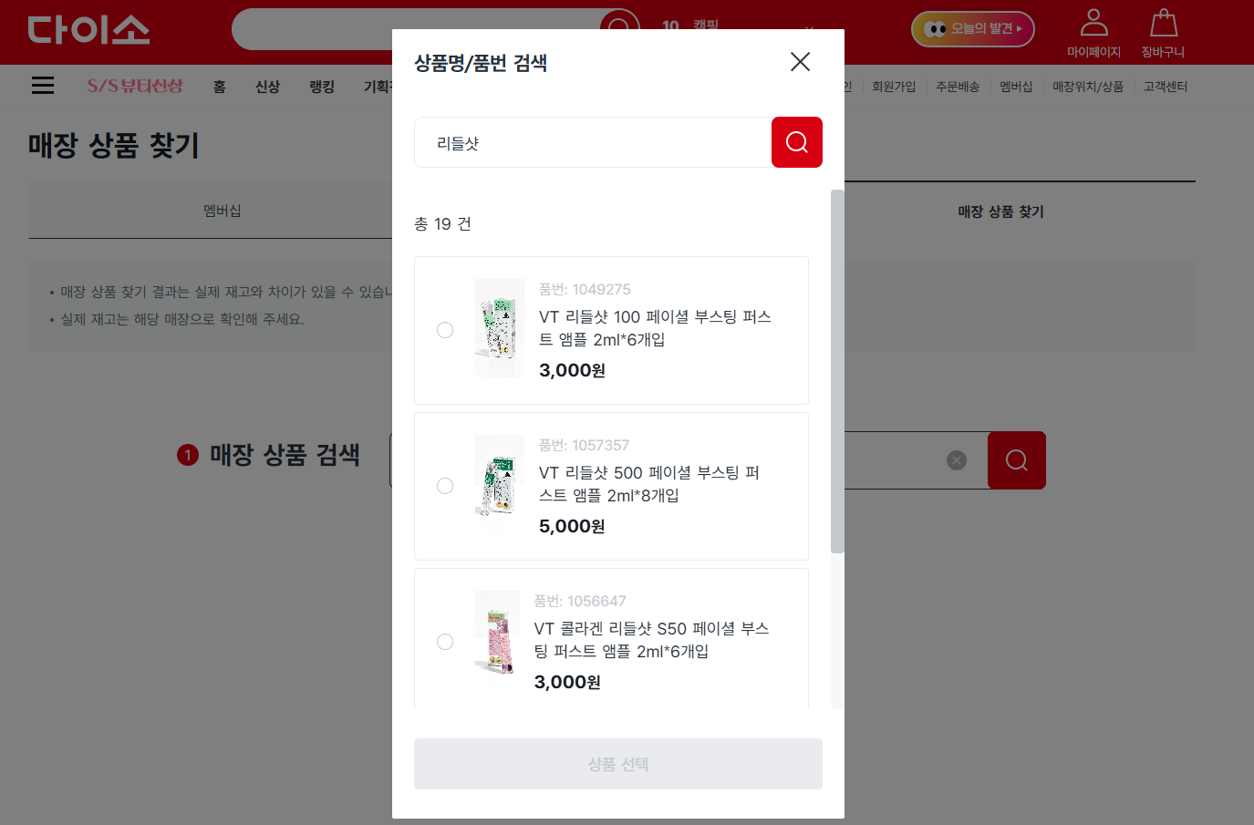 웹사이트에서 다이소 재고조회 하는 방법